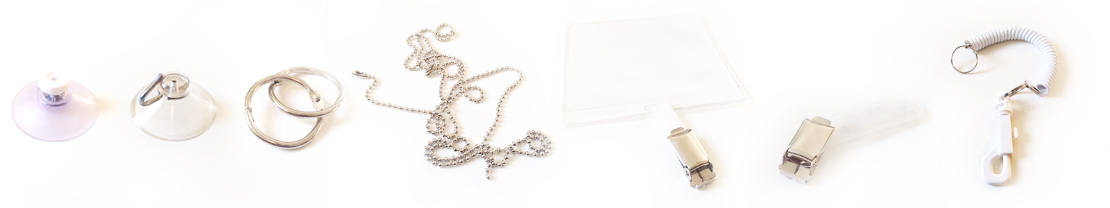 Laminiertaschen, Ausweishüllen, Kugelketten, Saugpfropfen, Schlüsselringe, Hologramme und mehr, eben vieles was Sie zum Laminat brauchen.